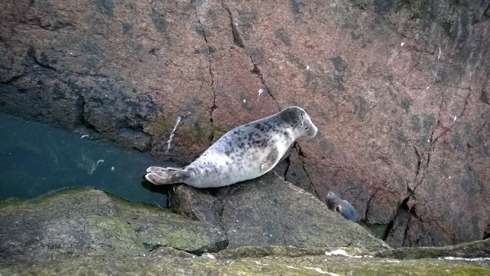 The terns kept me awake whole night and I was already up at wake-up time 5:30. The wind was calmed during the night and after breakfast we headed towards south-west in a beautiful sunny weather. After three hours paddling we reached outermost islets with huge seal colony. There were hundreds of seals following our kayaks and looking our lunch break at Bredkläpp - islet.